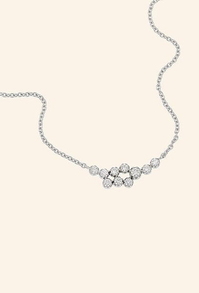 The magic topkapi necklace is created in our parisian workshop. white gold 750% (18 carat). average weight: 3.60 grams. stones: 10 diamonds of exceptional quality dvs, 0.38 carat, millegrain mounting. length of the chain: 38cm, extendable to 40cm.