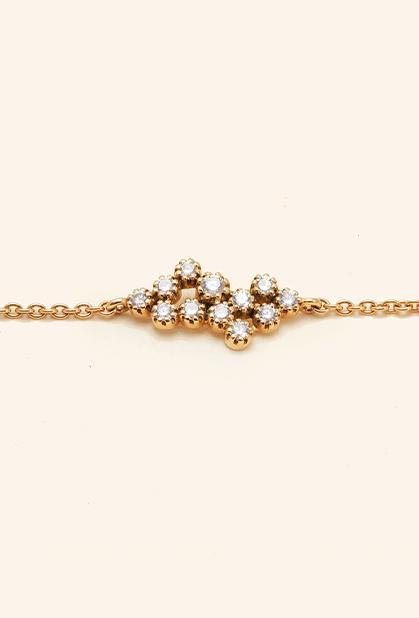 The magic topkapi bracelet is created in the maison’s parisian workshop: yellow gold 750% (18 carat). average weight: 3 grams. stones: 12 diamonds with an exceptional quality (dvs) mounting in a millegrain setting (0,46 carat). length of the chain: 16cm, extendable to 18cm.