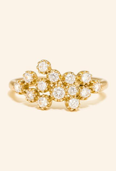 The magic topkapi ring is crafted in our parisian workshop. 18-carat yellow gold. weight: 3 grams. stones: 14 diamonds with an excellent quality (dvs): 0,51 carat millegrain mounting.
