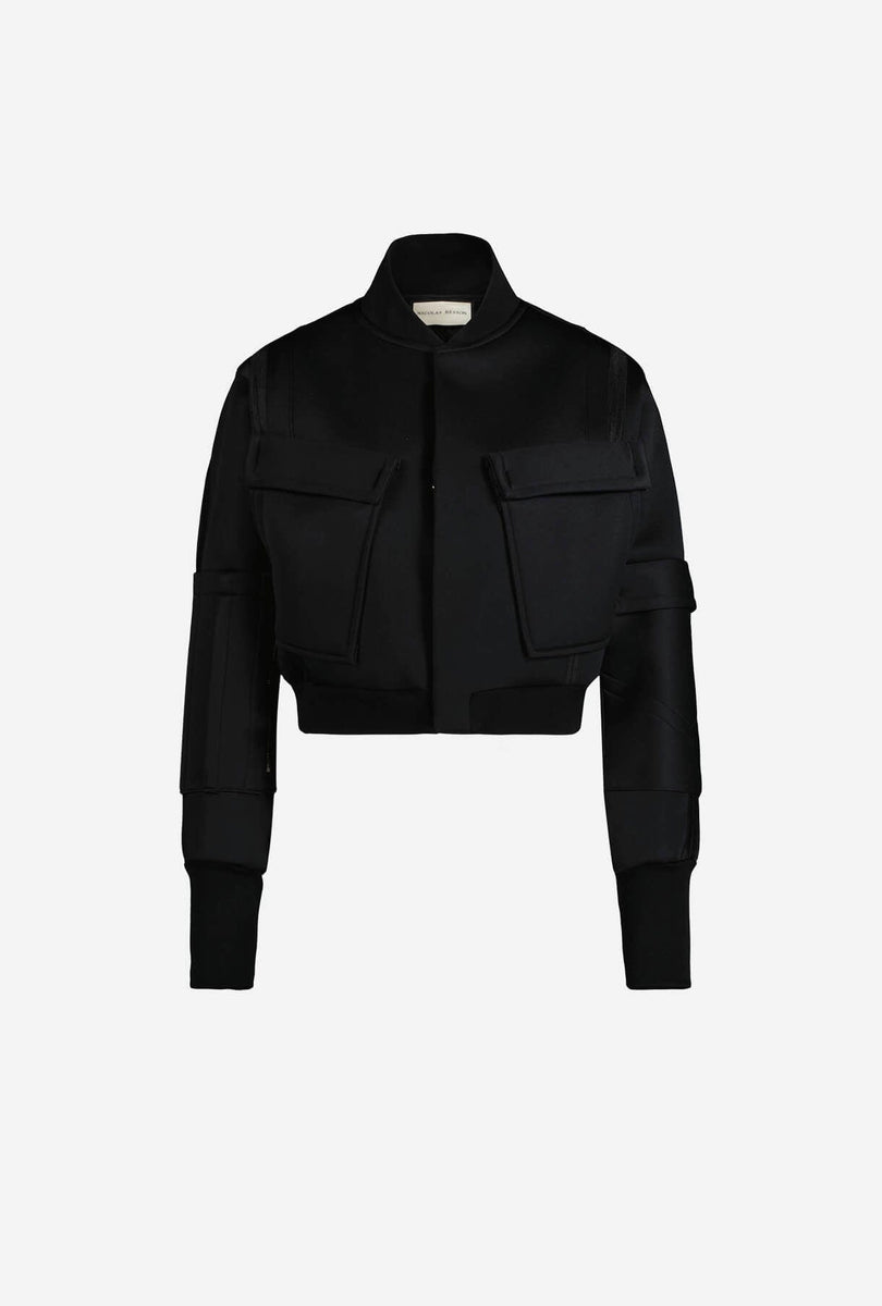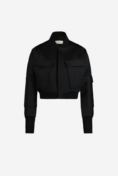Bombers femme Crop Couture en tissu néoprène technique esprit grain de poudre noir