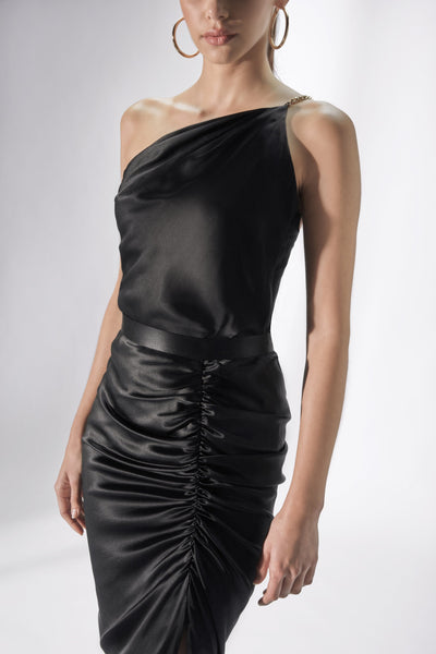 Couture techniques, such as pleating, embroideries with pearls and crystals, complex architecture of the silhouettes and shapes, are used both in evening wear and ready-to-wear. Every collection is based on a strong storytelling, developed for every single look, as well as for the collection in general.