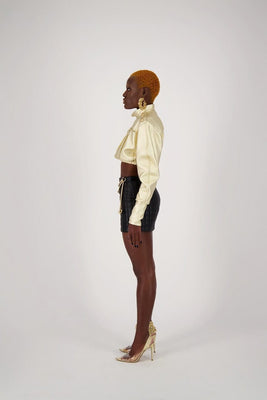 MAË PARIS couture is refined, a bit baroque, with a variety of signature elements : the corset, evening-wear embroidered jackets, evening-wear capes, glitter fabrics, embroideries in pearls and Swarovski. The couture pieces are always made-to-measures or unique pieces.