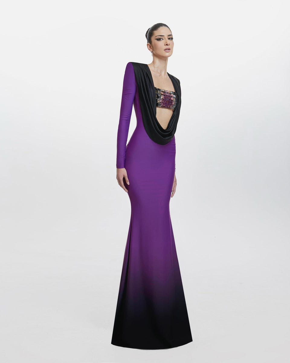 Revisiting the iconic jersey. A continuous shading of colors ranging from intense violet to deep black.