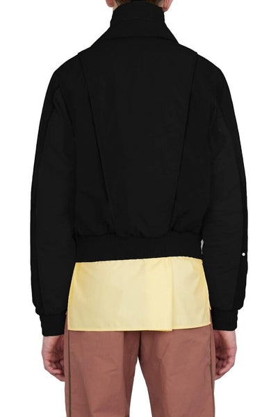 Tricolor techical bomber jacket Short cut double collar “V" embroidered quilted lining Two welt pockets Two interior welt pockets Invisible body and pocket snaps
