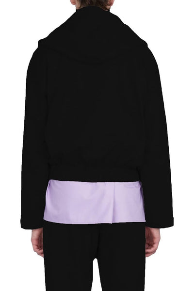 Long-sleeved yellow wool sweater High collar with zip hood Finishing with printed bias "VALETTE STUDIO"
