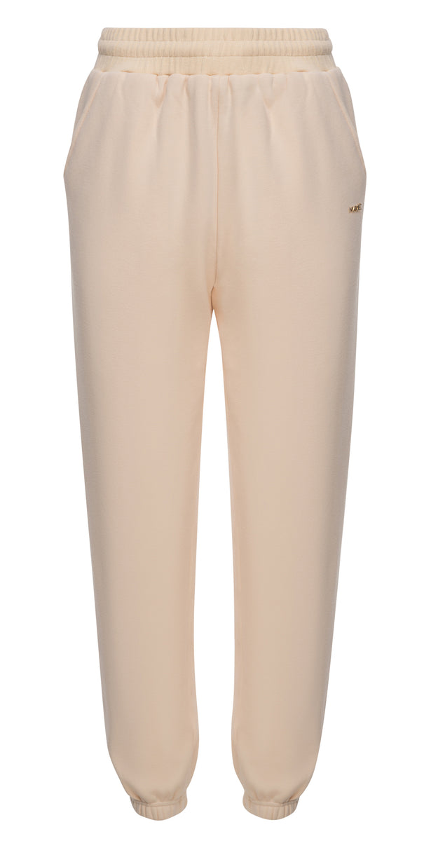 Unisex polar beige jogging pants in 100% organic cotton.