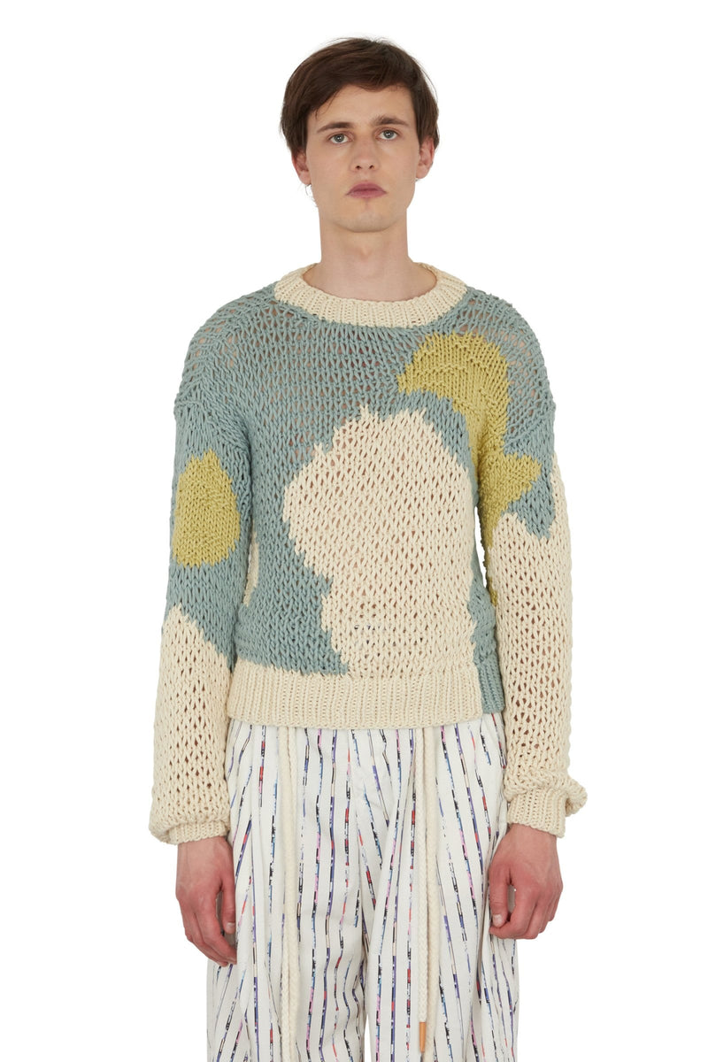 Handmade long sleeve sweater in eco-responsible cotton River stitch knit
