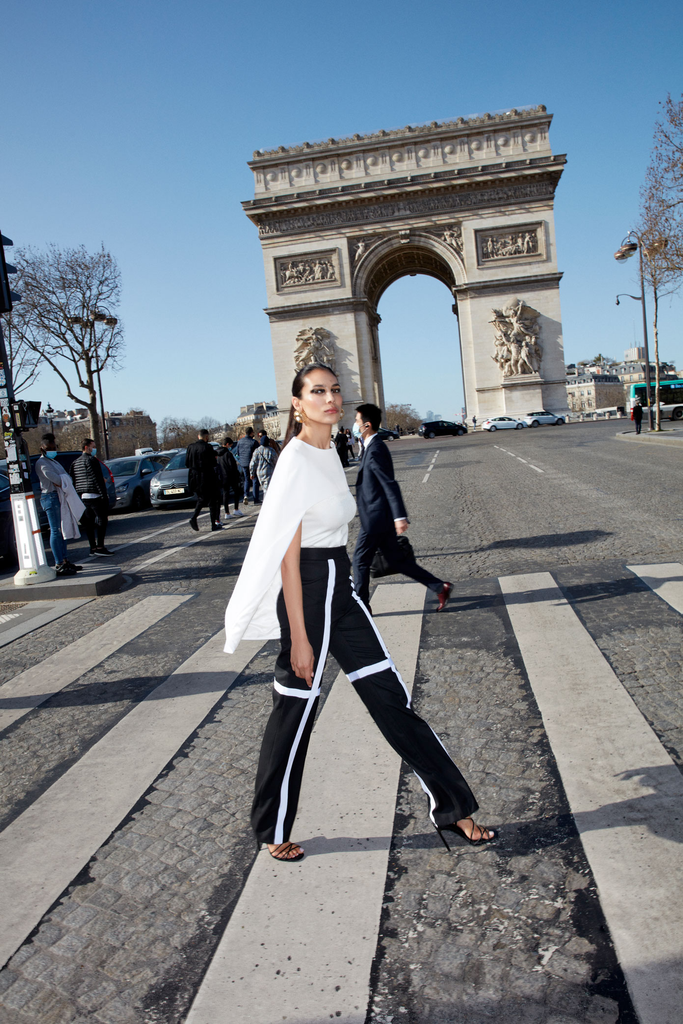 MAË PARIS ready-to-wear is strong and feminine, easy-to-wear and sophisticated, consisting always from the shapes, that flatter the woman's silhouette and help gain self-confidence. The key piece of the line is the jacket, revisited from the man's wardrobe ; and the whole line in general features a mix of masculine and feminine elements in one piece, and plays a lot with the bi-color and bi-fabric motifs. Every collection features prêt-à-couture and casual pieces, forming a complete wardrobe.