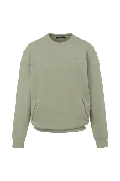 Unisex green sweatshirt in 100% organic cotton. Two pockets on the front.
