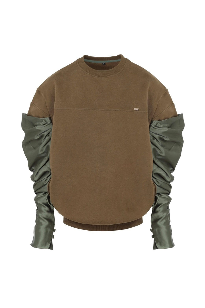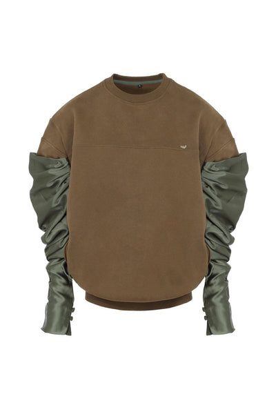 Dark green sweatshirt in 100% organic cotton with satin sleeves.